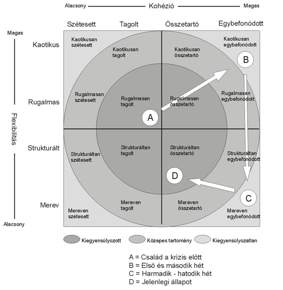Bár krízis hatására minden családban változás következik be, a kiegyensúlyozott családoknak megvannak a forrásaik és képességeik ahhoz, hogy a rendszerüket - a krízis hatékonyabb kezelésének megfelelően - megváltoztassák. Ezzel ellentétben a szélsőséges családok forrásai nem megfelelőek, nehezebben birkóznak meg a nehézségekkel (Olson és Gorall, 2003).